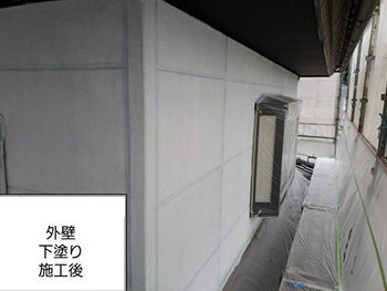 外壁の2度目の下塗りの様子です。塗り重ねることで、むらが出にくくなります。