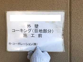 外壁コーキング後、塗料を塗る前の様子です。退色が起きています。